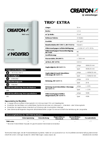 Resistance to air penetration< 0,038 m³/m² h 50 Pa